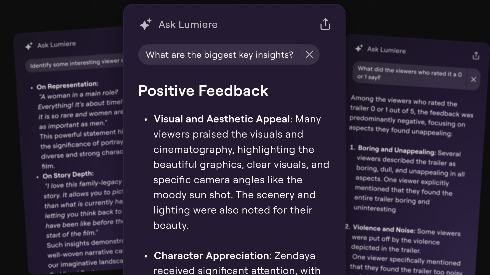 No matter the type or length of your content, Lumiere now automatically generates detailed moment-to-moment breakdowns of your videos. Dive deeper into your content, discover hidden insights, and elevate your video experience.
